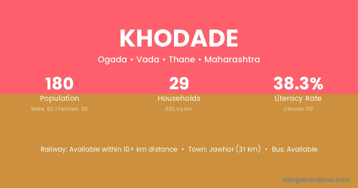Jawhar (31 km) is the nearest town to Khodade village for major economic activities and is located approximately 31 km away.