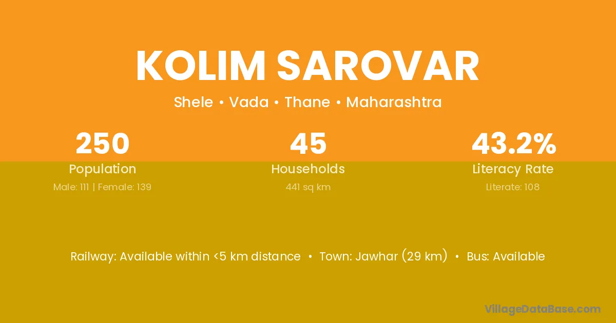 Jawhar (29 km) is the nearest town to Kolim Sarovar village for major economic activities and is located approximately 29 km away.
