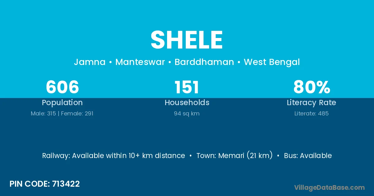 According to Census 2011 information, the village code of Shele village is 421303.