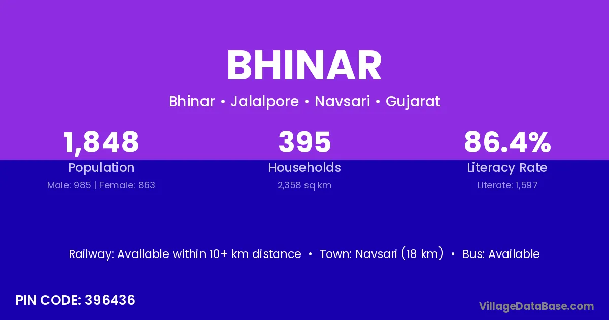 Virar (26 km) is the nearest town to Bhinar village for major economic activities and is located approximately 26 km away.