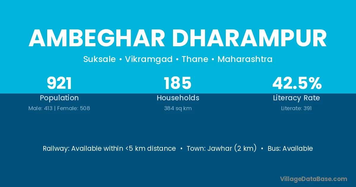 Jawhar (2 km) is the nearest town to Ambeghar Dharampur village for major economic activities and is located approximately 2 km away.