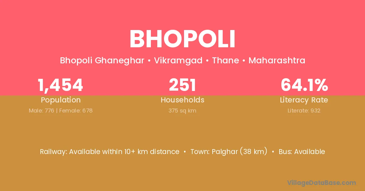 Palghar (38 km) is the nearest town to Bhopoli village for major economic activities and is located approximately 38 km away.