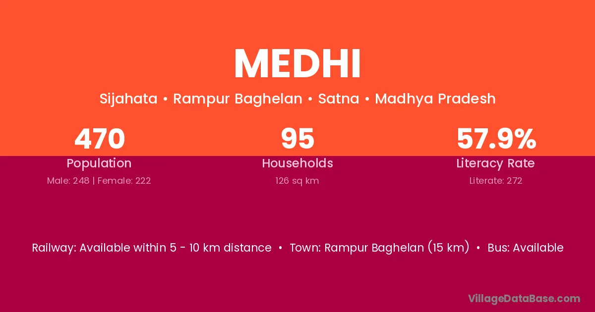 Medhi village has a total population of 1,094 people, of which 536 are males and 558 are females.