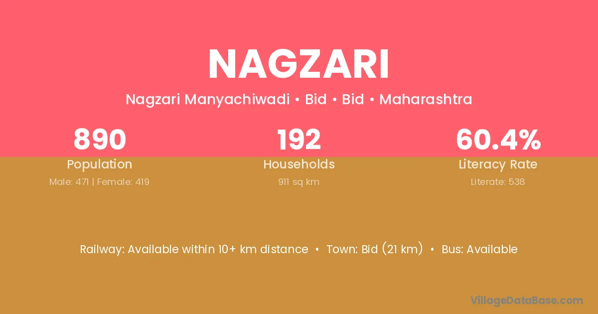 Jawhar (26 km) is the nearest town to Nagzari village for major economic activities and is located approximately 26 km away.