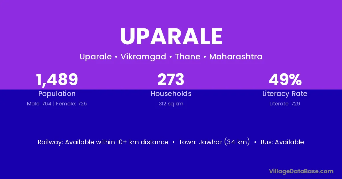 Jawhar (34 km) is the nearest town to Uparale village for major economic activities and is located approximately 34 km away.