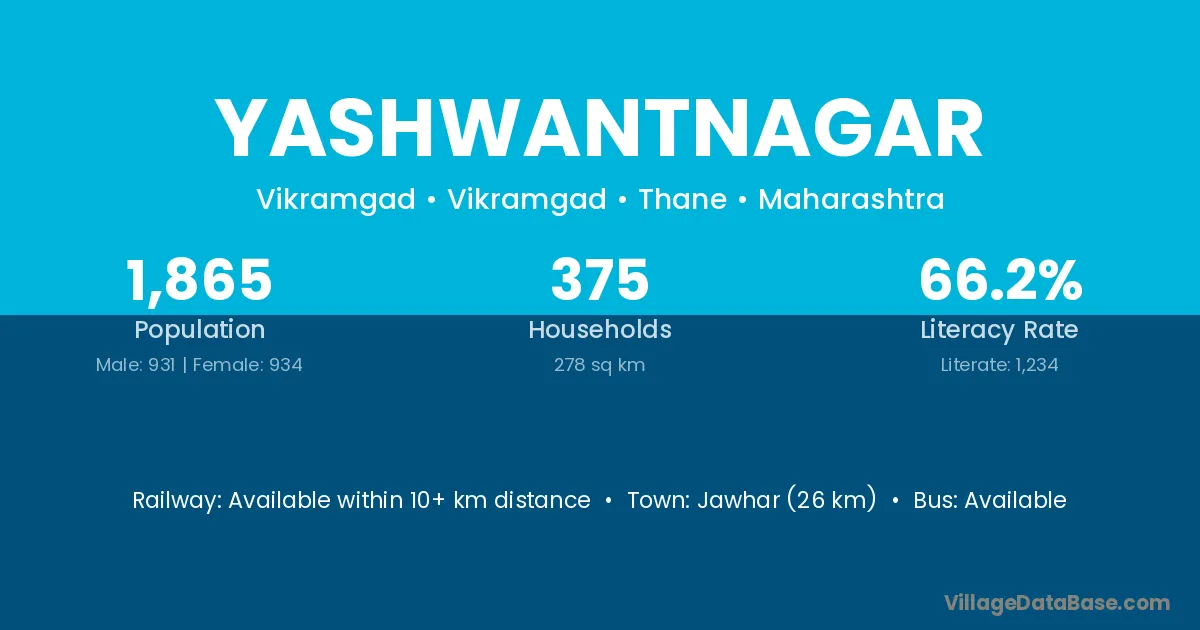 Jawhar (26 km) is the nearest town to Yashwantnagar village for major economic activities and is located approximately 26 km away.