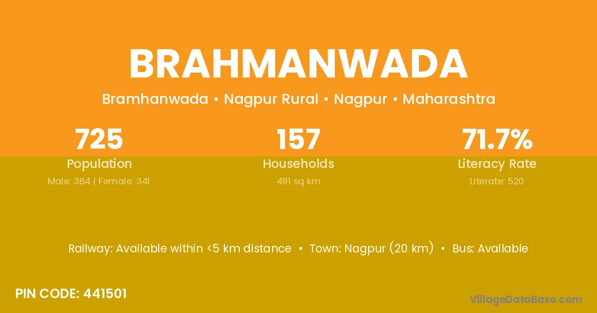 Wardha (27 km) is the nearest town to Brahmanwada village for major economic activities and is located approximately 27 km away.