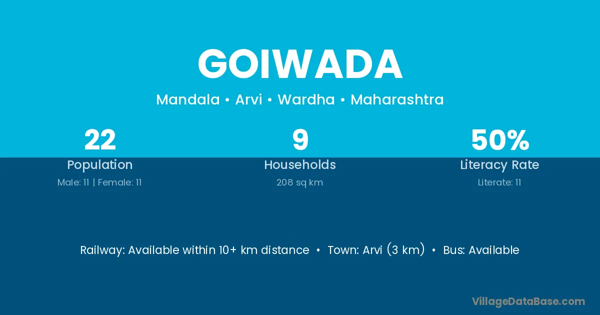 Arvi (3 km) is the nearest town to Goiwada village for major economic activities and is located approximately 3 km away.