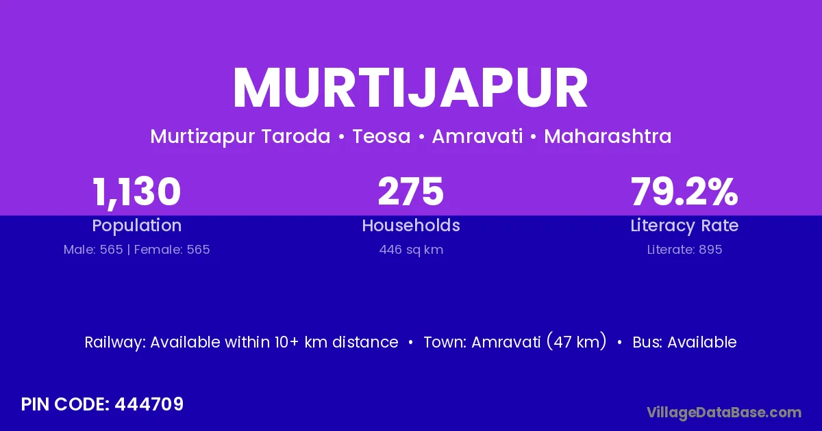 Arvi is the nearest town to Murtijapur village for major economic activities