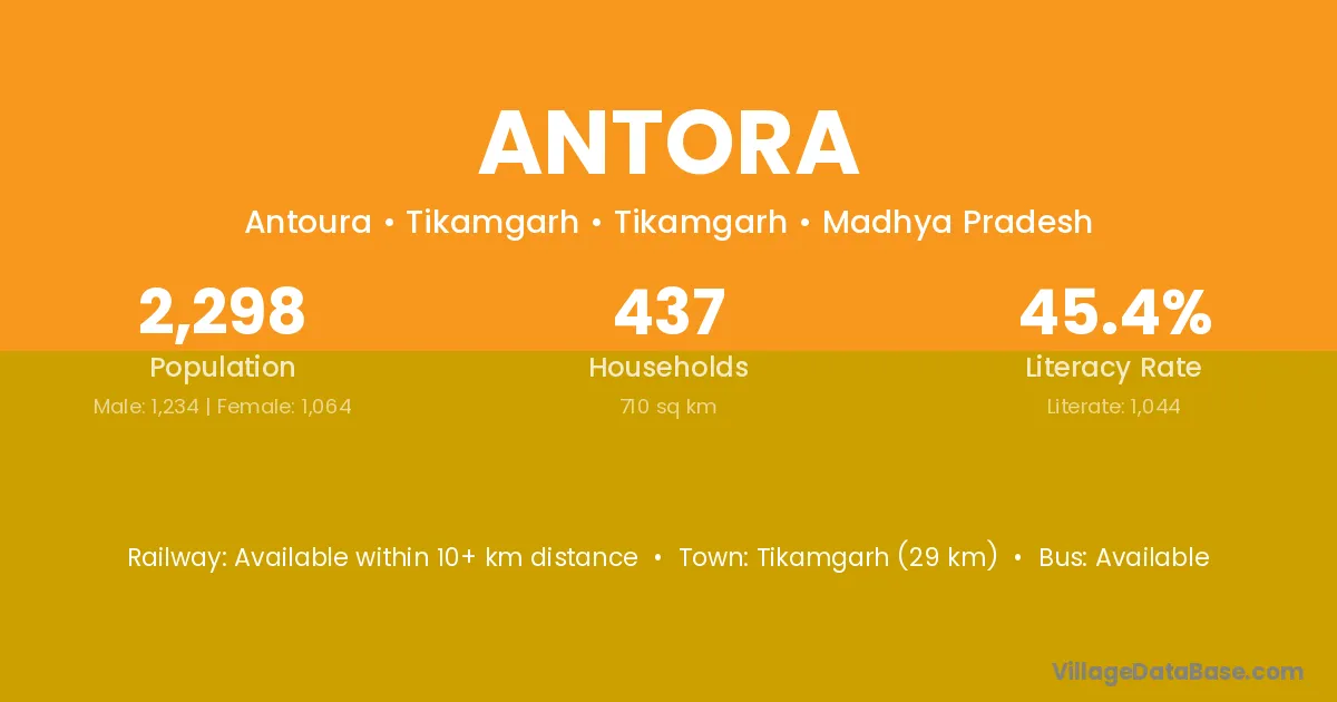Arvi (35 km) is the nearest town to Antora village for major economic activities and is located approximately 35 km away.