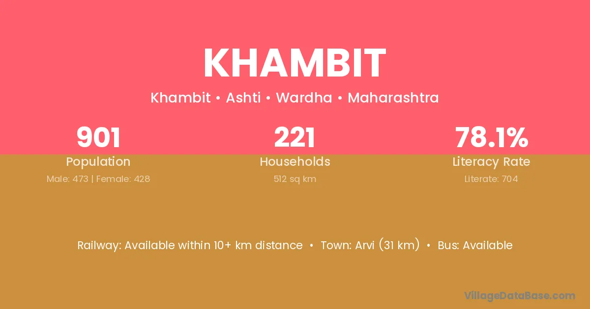 Arvi (31 km) is the nearest town to Khambit village for major economic activities and is located approximately 31 km away.