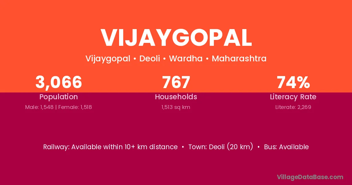 Deoli (20 km) is the nearest town to Vijaygopal village for major economic activities and is located approximately 20 km away.