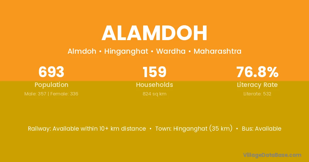 Hinganghat (35 km) is the nearest town to Alamdoh village for major economic activities and is located approximately 35 km away.