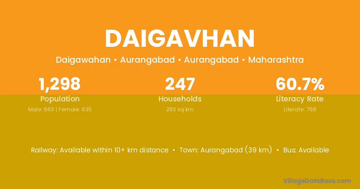 Hinganghat (15 km) is the nearest town to Daigavhan village for major economic activities and is located approximately 15 km away.