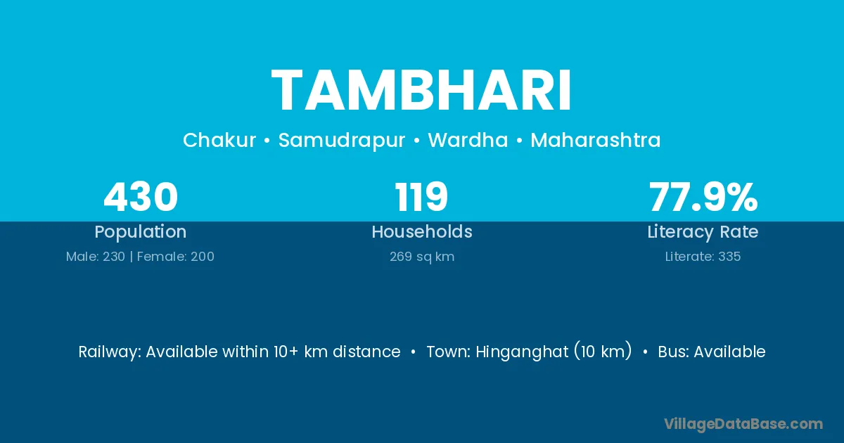 Hinganghat (9 km) is the nearest town to Tambhari village for major economic activities and is located approximately 9 km away.