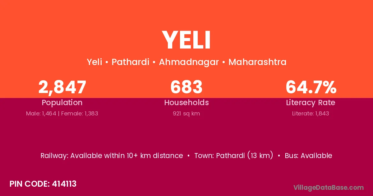 Hinganghat (30 km) is the nearest town to Yeli village for major economic activities and is located approximately 30 km away.