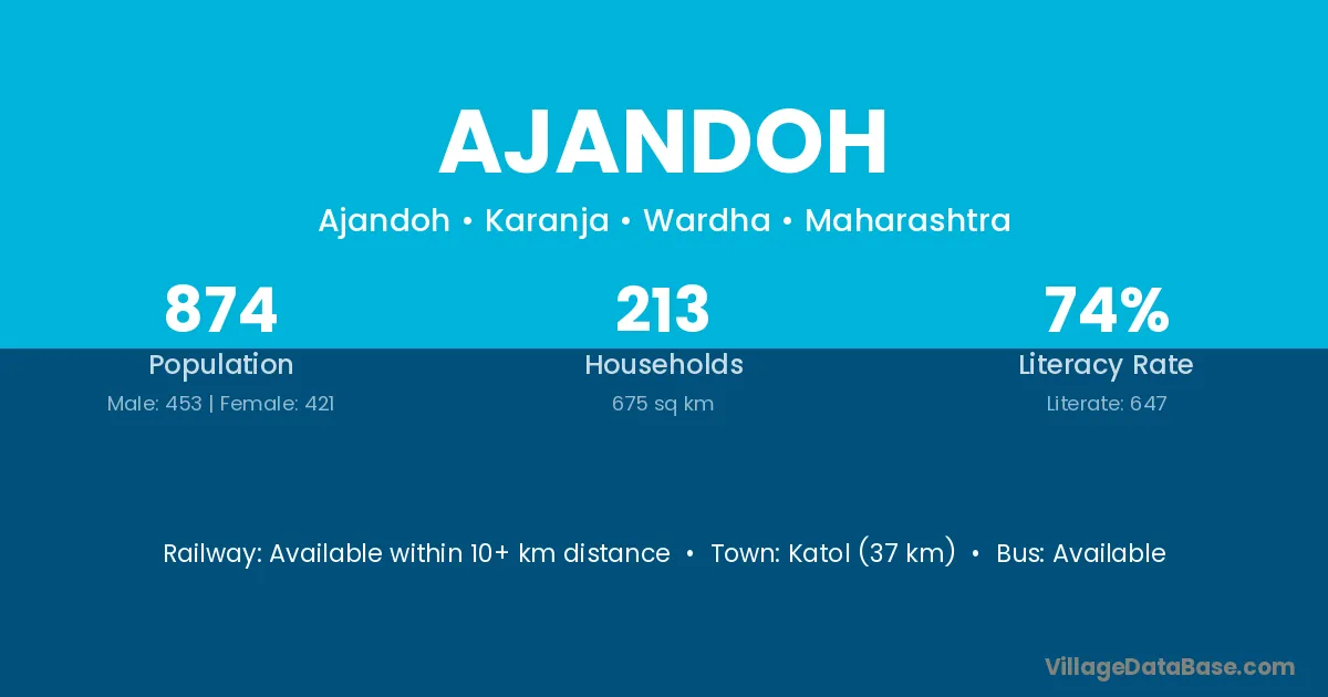 Katol (37 km) is the nearest town to Ajandoh village for major economic activities and is located approximately 37 km away.
