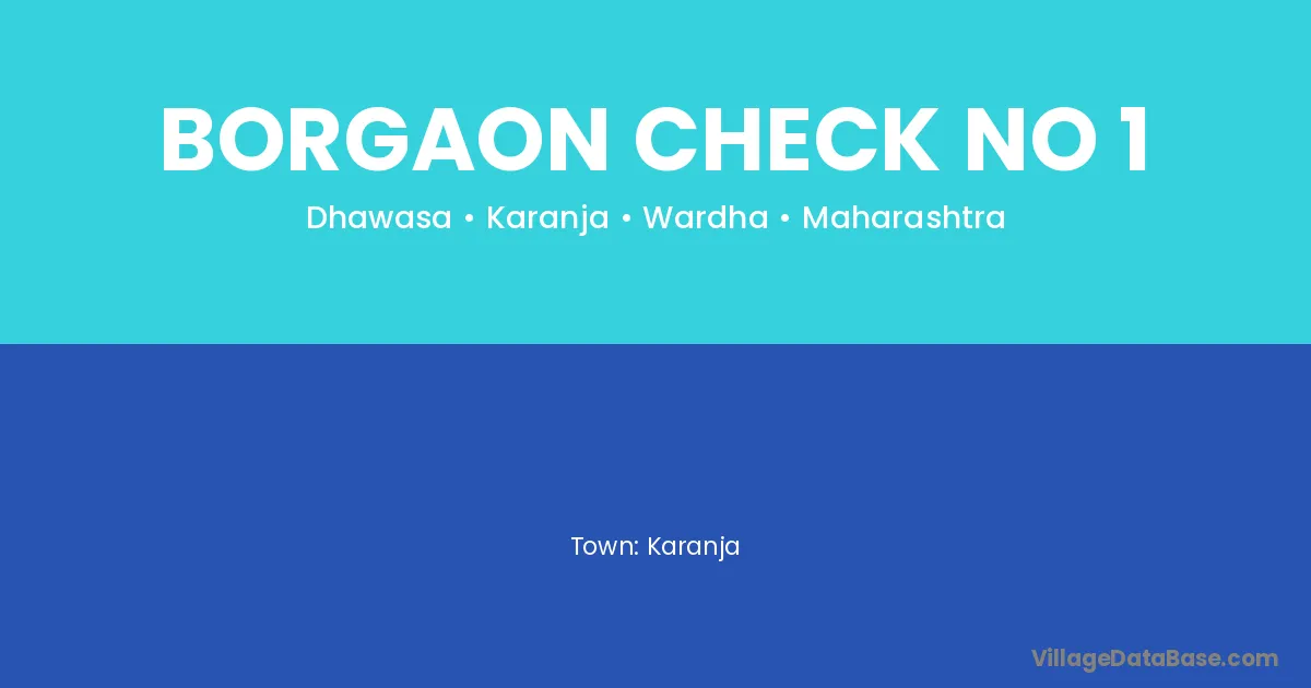 Karanja is the nearest town to Borgaon Check No 1 village for major economic activities