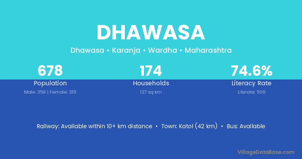 Katol (42 km) is the nearest town to Dhawasa village for major economic activities and is located approximately 42 km away.