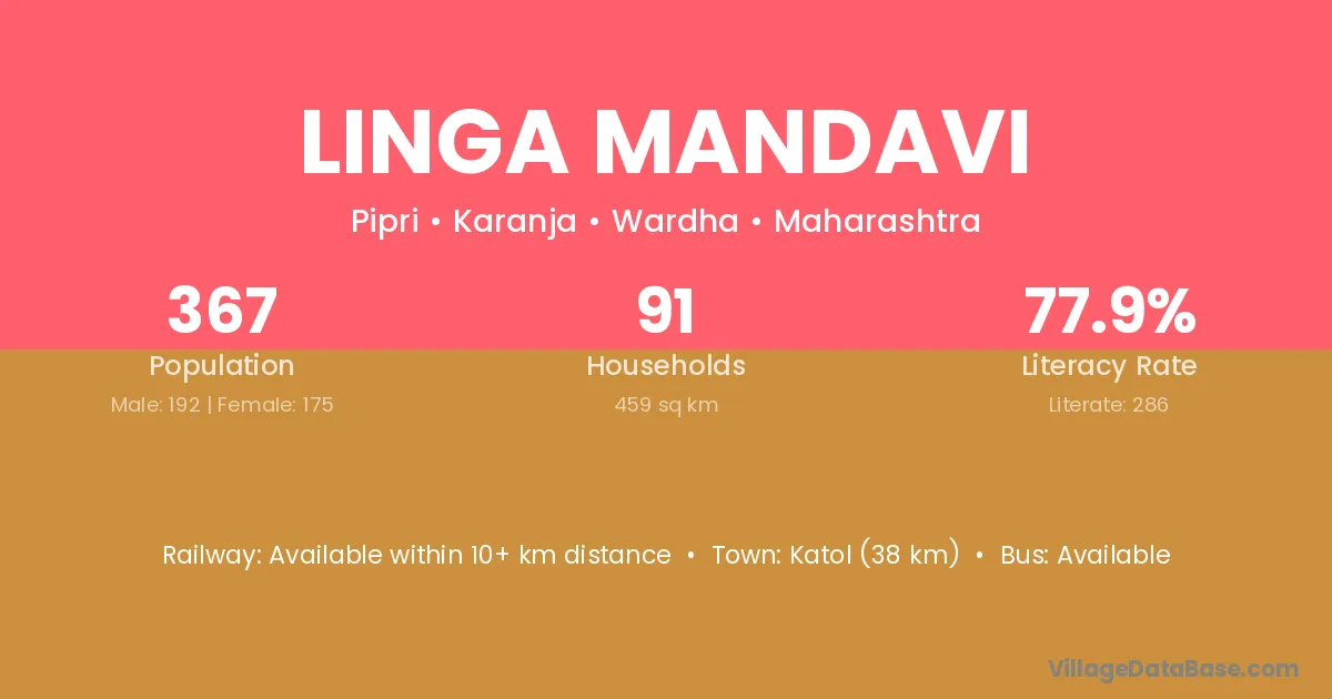 Katol (38 km) is the nearest town to Linga Mandavi village for major economic activities and is located approximately 38 km away.