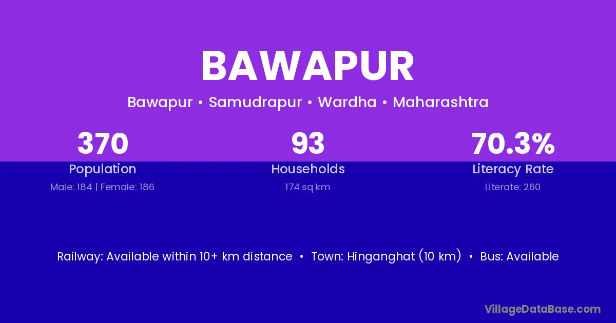 Hinganghat (10 km) is the nearest town to Bawapur village for major economic activities and is located approximately 10 km away.