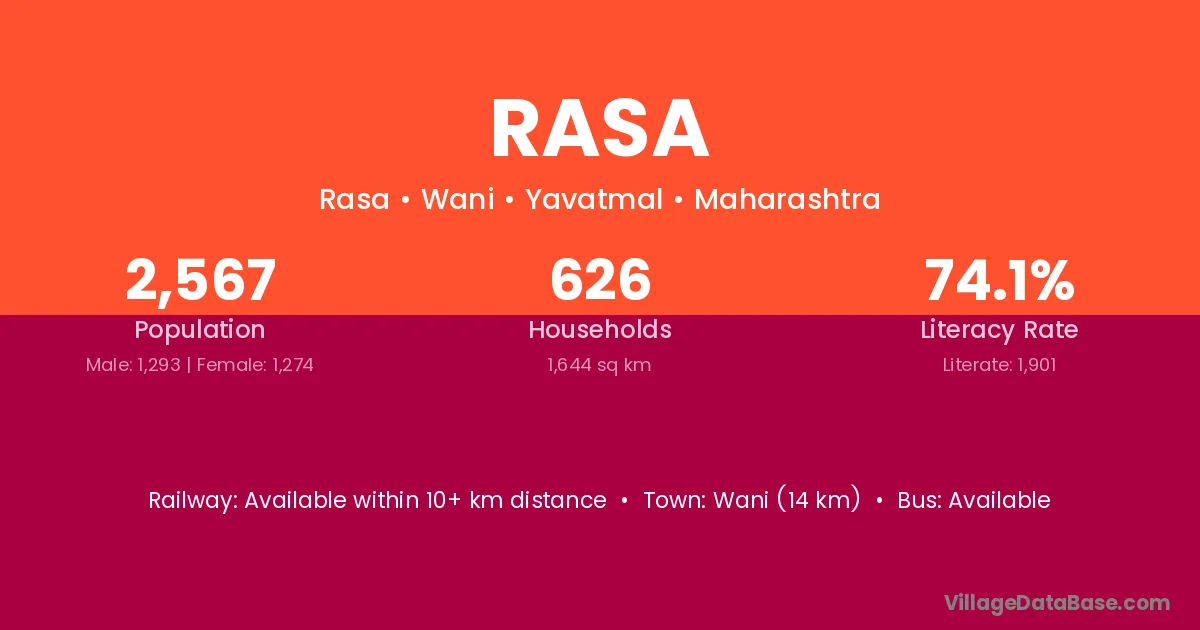Hinganghat (45 km) is the nearest town to Rasa village for major economic activities and is located approximately 45 km away.
