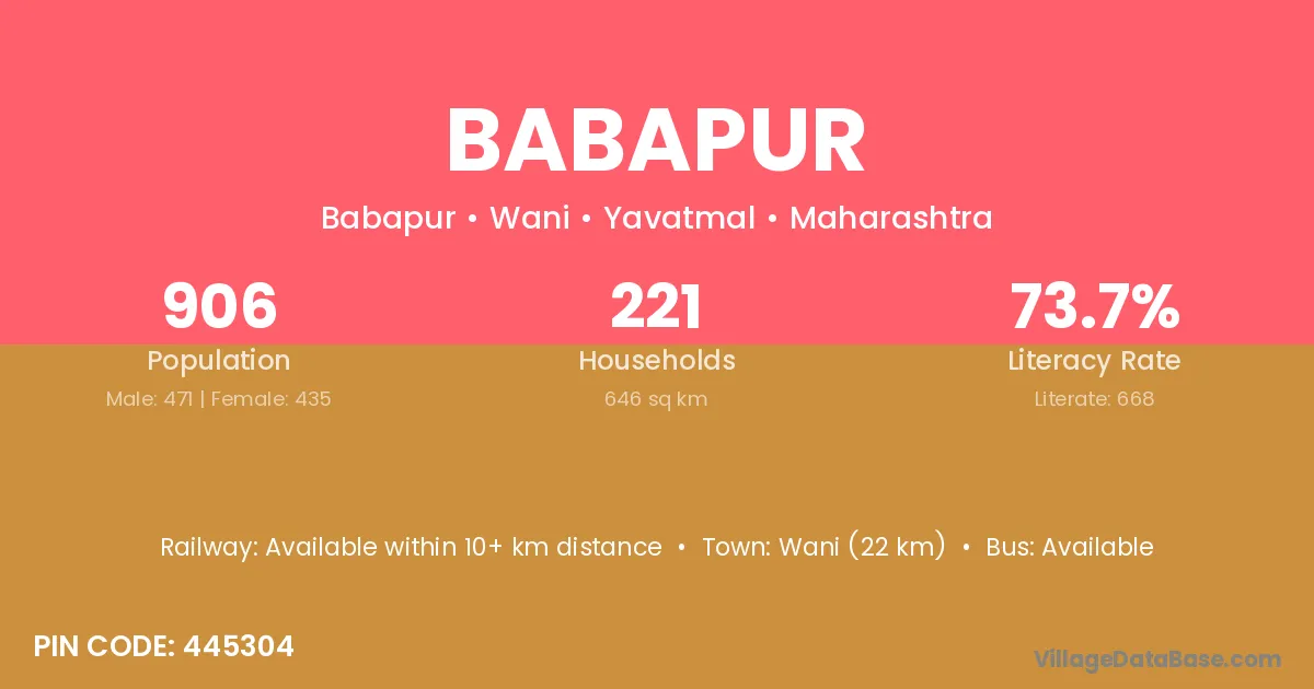 Wardha (13 km) is the nearest town to Babapur village for major economic activities and is located approximately 13 km away.