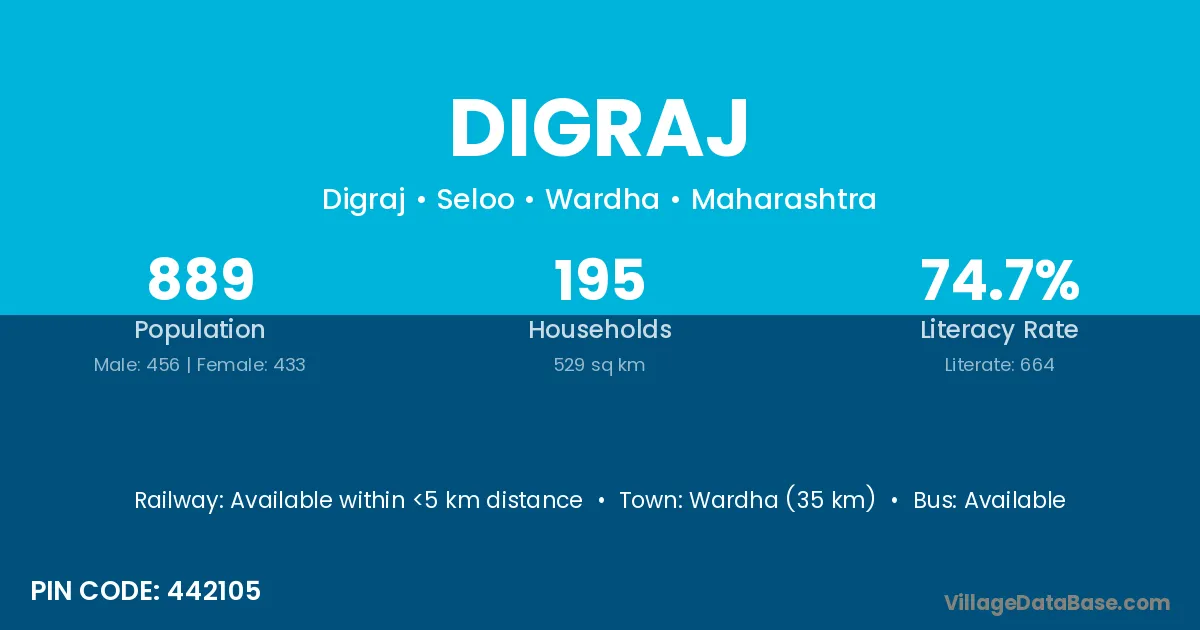 Wardha (35 km) is the nearest town to Digraj village for major economic activities and is located approximately 35 km away.