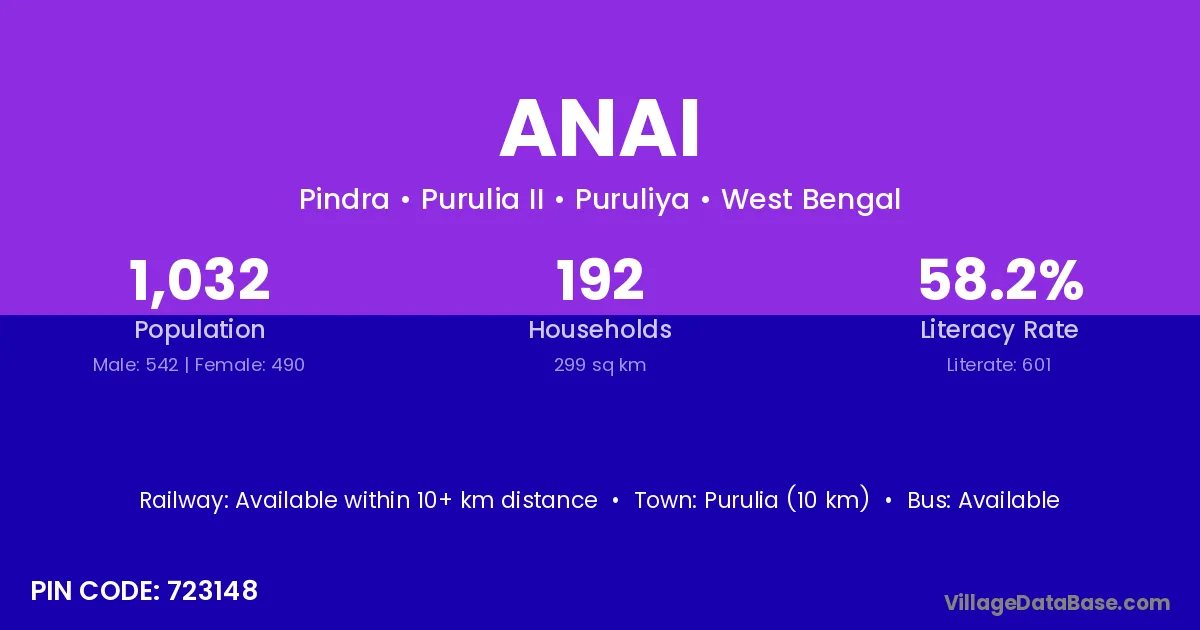 Karanja (5 km) is the nearest town to Anai village for major economic activities and is located approximately 5 km away.