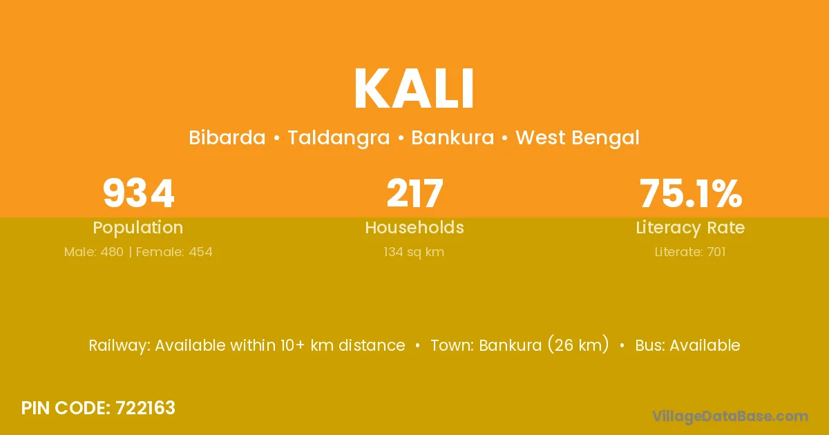 The literacy rate of Kali village is 85.98%. Male literacy stands at 86.40% and female literacy at 85.52%.