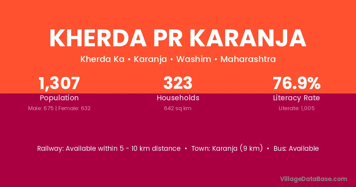 Kherda Pr Karanja village has a total population of 1,307 people, of which 675 are males and 632 are females.