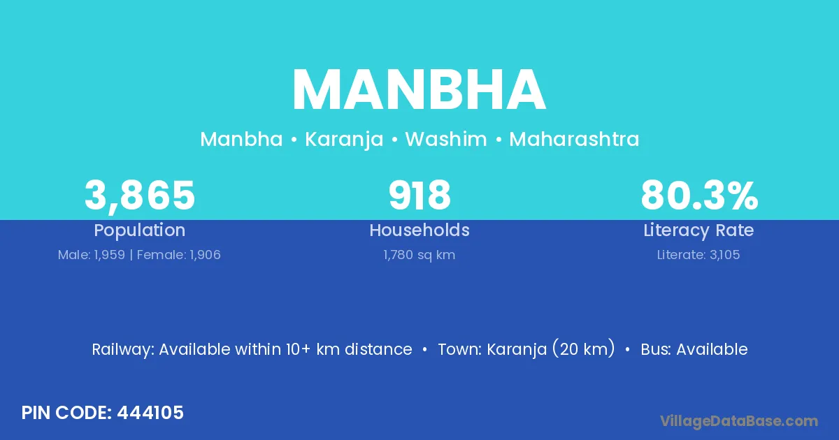 Karanja (20 km) is the nearest town to Manbha village for major economic activities and is located approximately 20 km away.