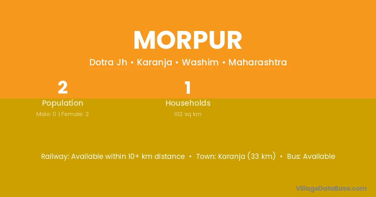Karanja (33 km) is the nearest town to Morpur village for major economic activities and is located approximately 33 km away.