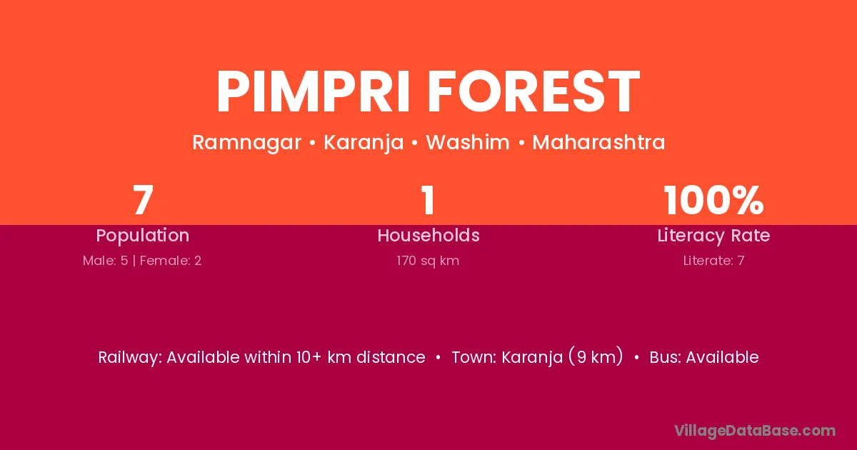 Karanja (9 km) is the nearest town to Pimpri Forest village for major economic activities and is located approximately 9 km away.