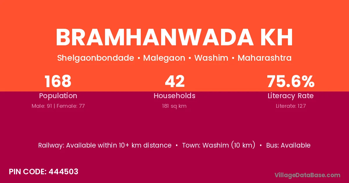 Washim (10 km) is the nearest town to Bramhanwada Kh village for major economic activities and is located approximately 10 km away.