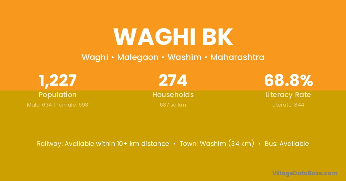 Waghi Bk village has a total population of 1,227 people, of which 634 are males and 593 are females.