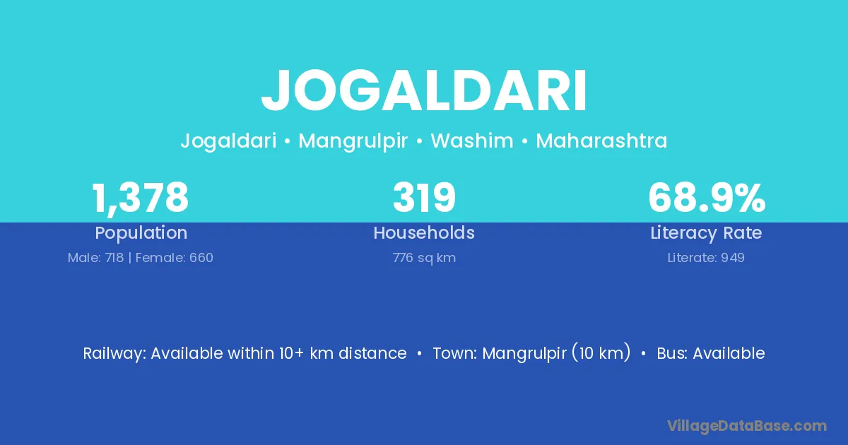 Mangrulpir (10 km) is the nearest town to Jogaldari village for major economic activities and is located approximately 10 km away.