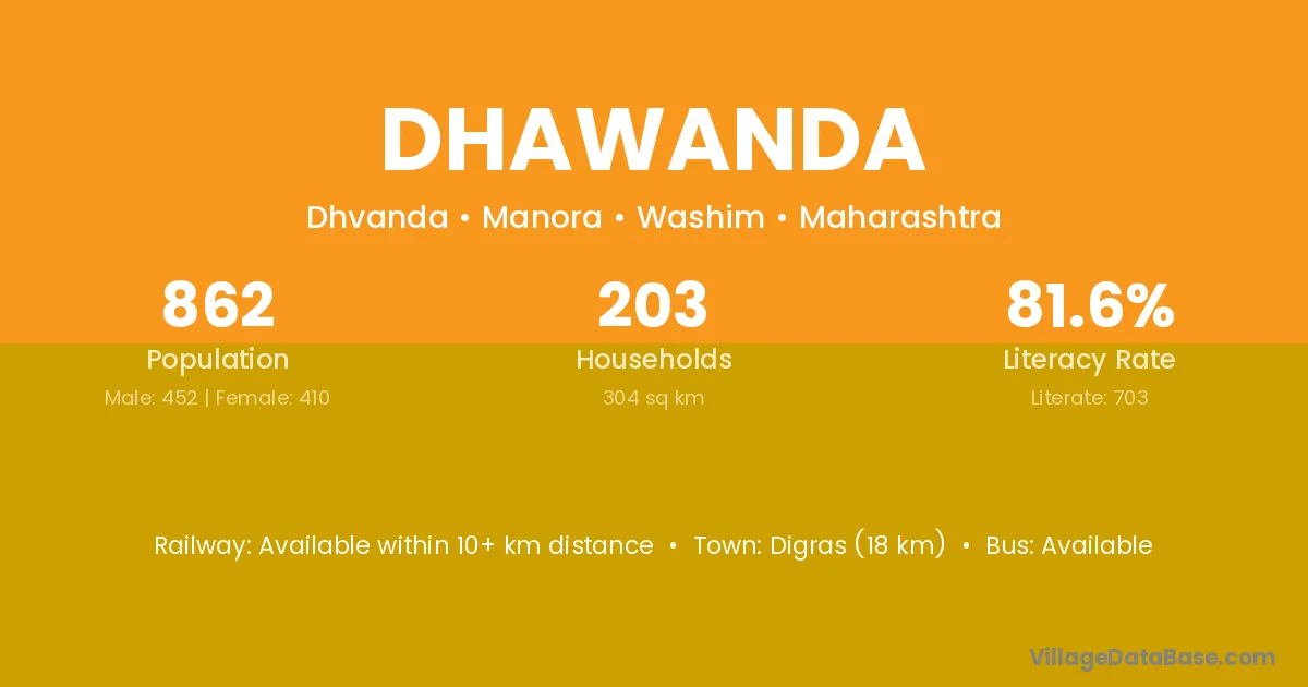 Digras (18 km) is the nearest town to Dhawanda village for major economic activities and is located approximately 18 km away.