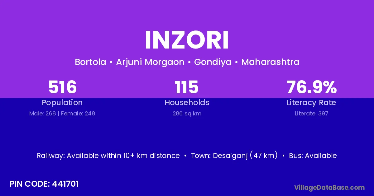 According to Census 2011 information, the village code of Inzori village is 444404.