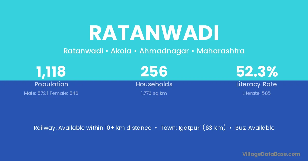 Mangrulpir (30 km) is the nearest town to Ratanwadi village for major economic activities and is located approximately 30 km away.