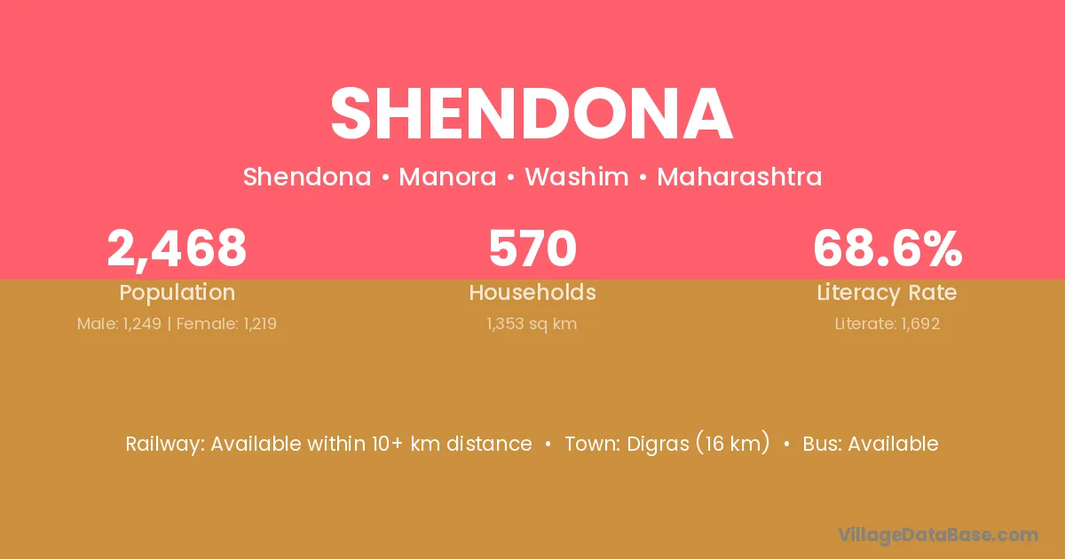 Digras (16 km) is the nearest town to Shendona village for major economic activities and is located approximately 16 km away.