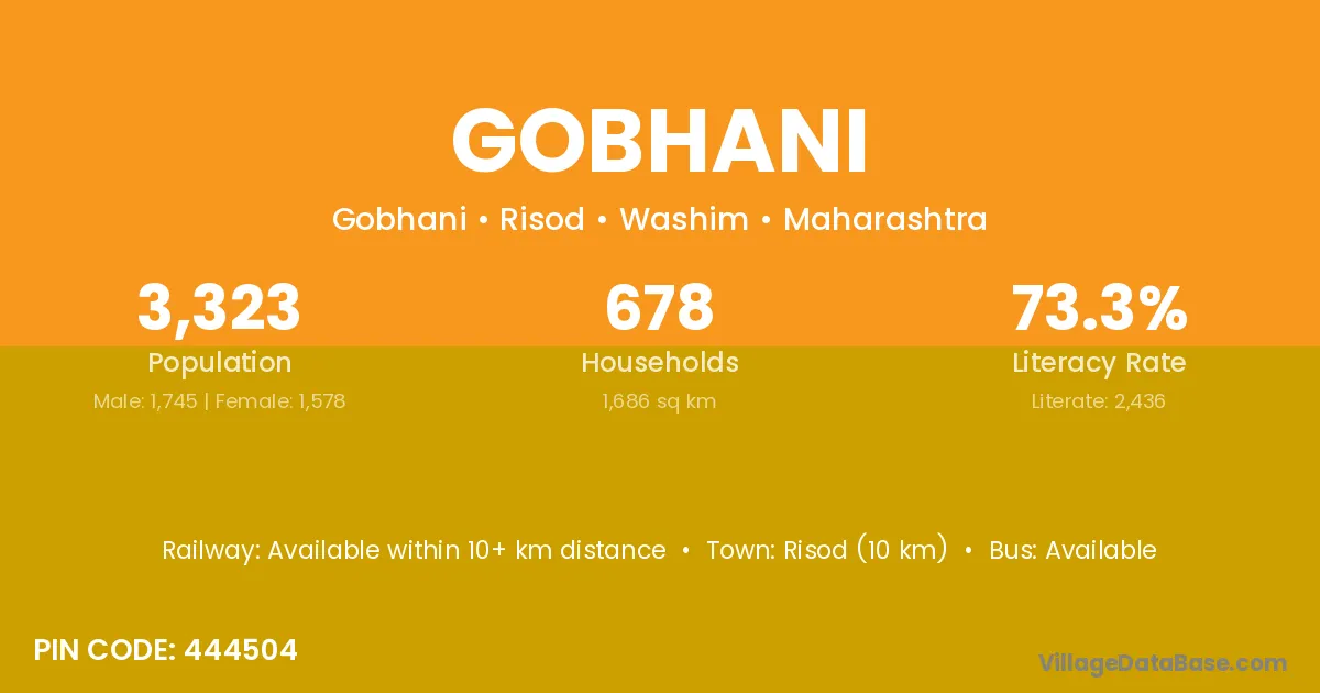 Risod (10 km) is the nearest town to Gobhani village for major economic activities and is located approximately 10 km away.