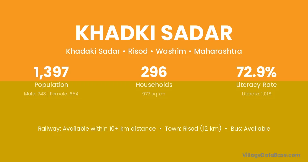 Risod (12 km) is the nearest town to Khadki Sadar village for major economic activities and is located approximately 12 km away.