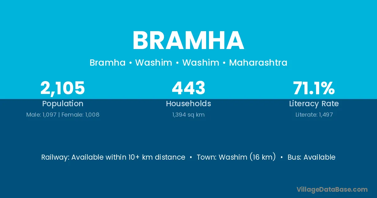 Washim (16 km) is the nearest town to Bramha village for major economic activities and is located approximately 16 km away.