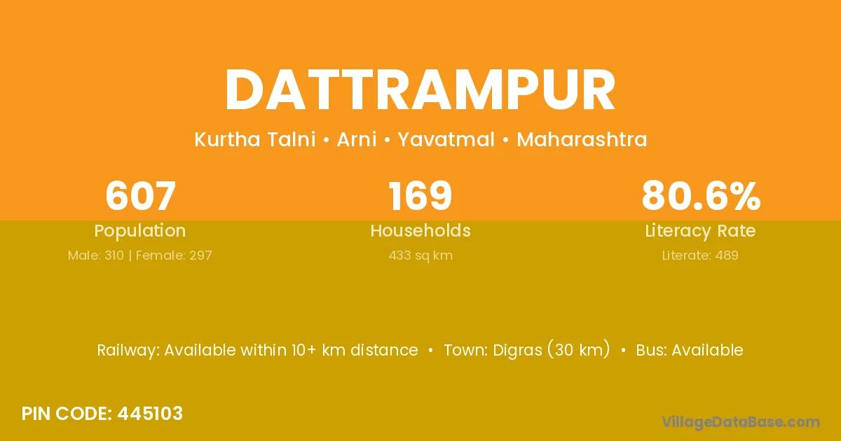 Digras (30 km) is the nearest town to Dattrampur village for major economic activities and is located approximately 30 km away.