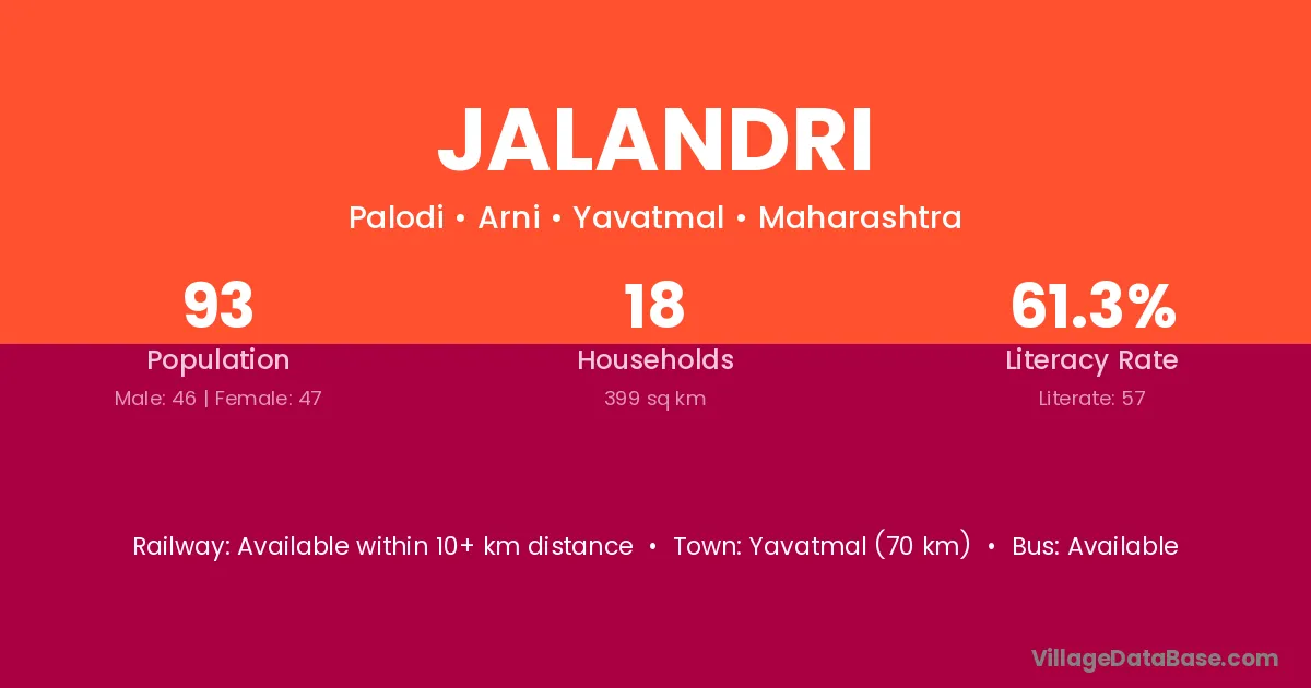 Yavatmal (70 km) is the nearest town to Jalandri village for major economic activities and is located approximately 70 km away.