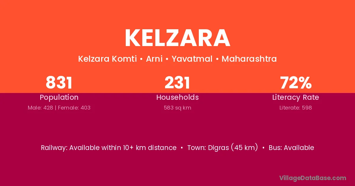 Digras (45 km) is the nearest town to Kelzara village for major economic activities and is located approximately 45 km away.