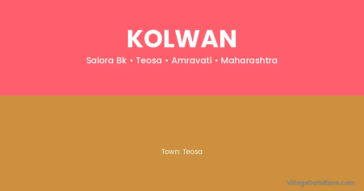 Digras (32 km) is the nearest town to Kolwan village for major economic activities and is located approximately 32 km away.