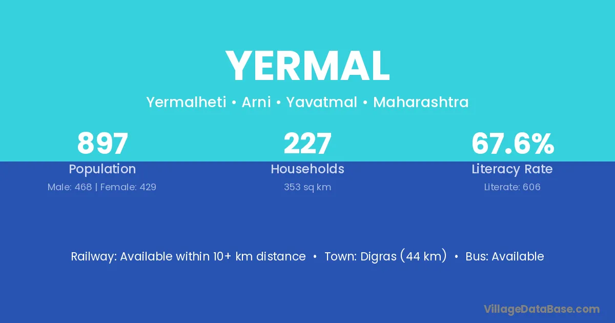 Digras (44 km) is the nearest town to Yermal village for major economic activities and is located approximately 44 km away.