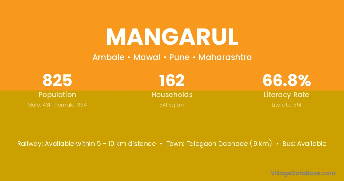 Yavatmal (30 km) is the nearest town to Mangarul village for major economic activities and is located approximately 30 km away.